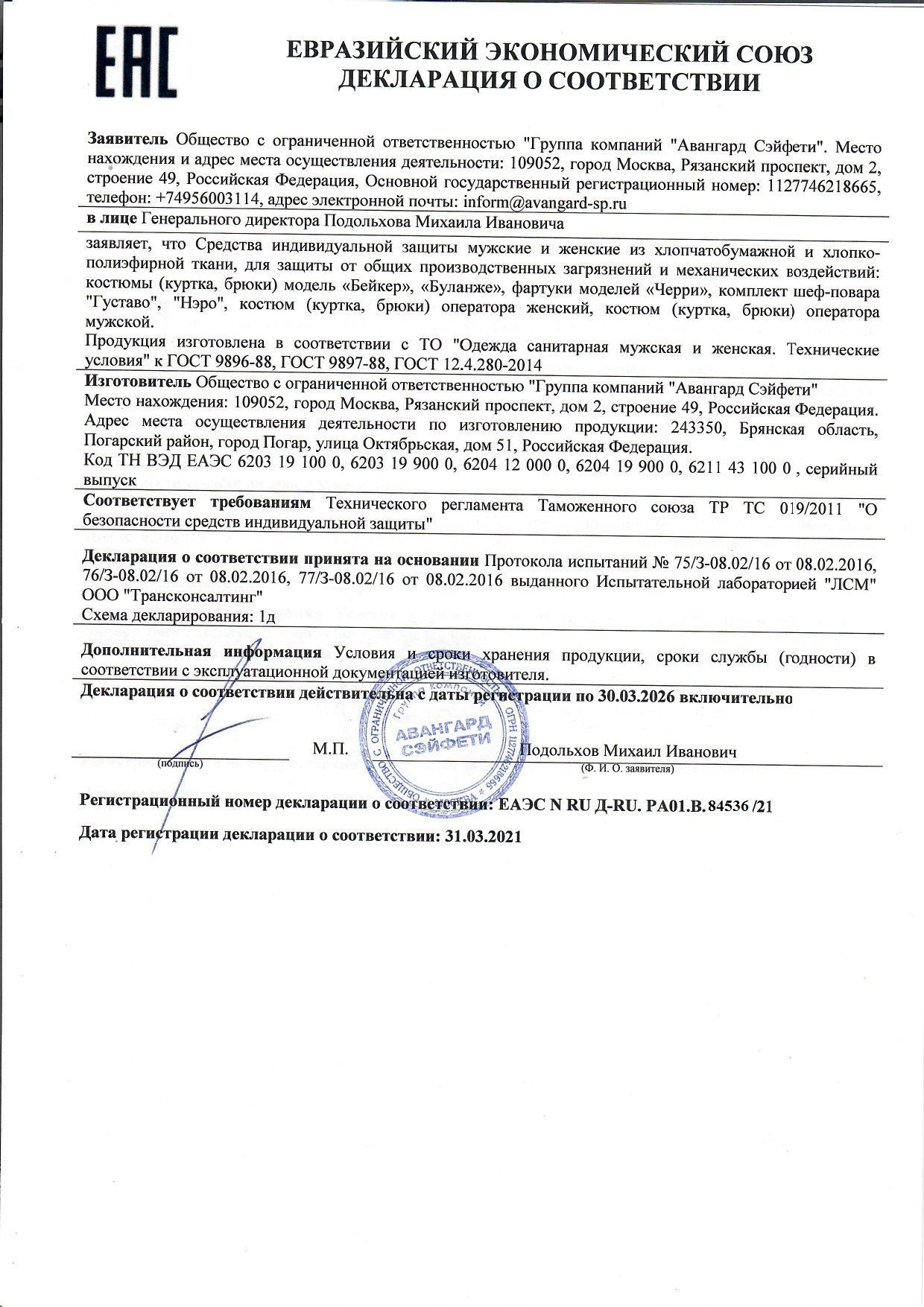 [0] => Одежда для пищевой промышленности